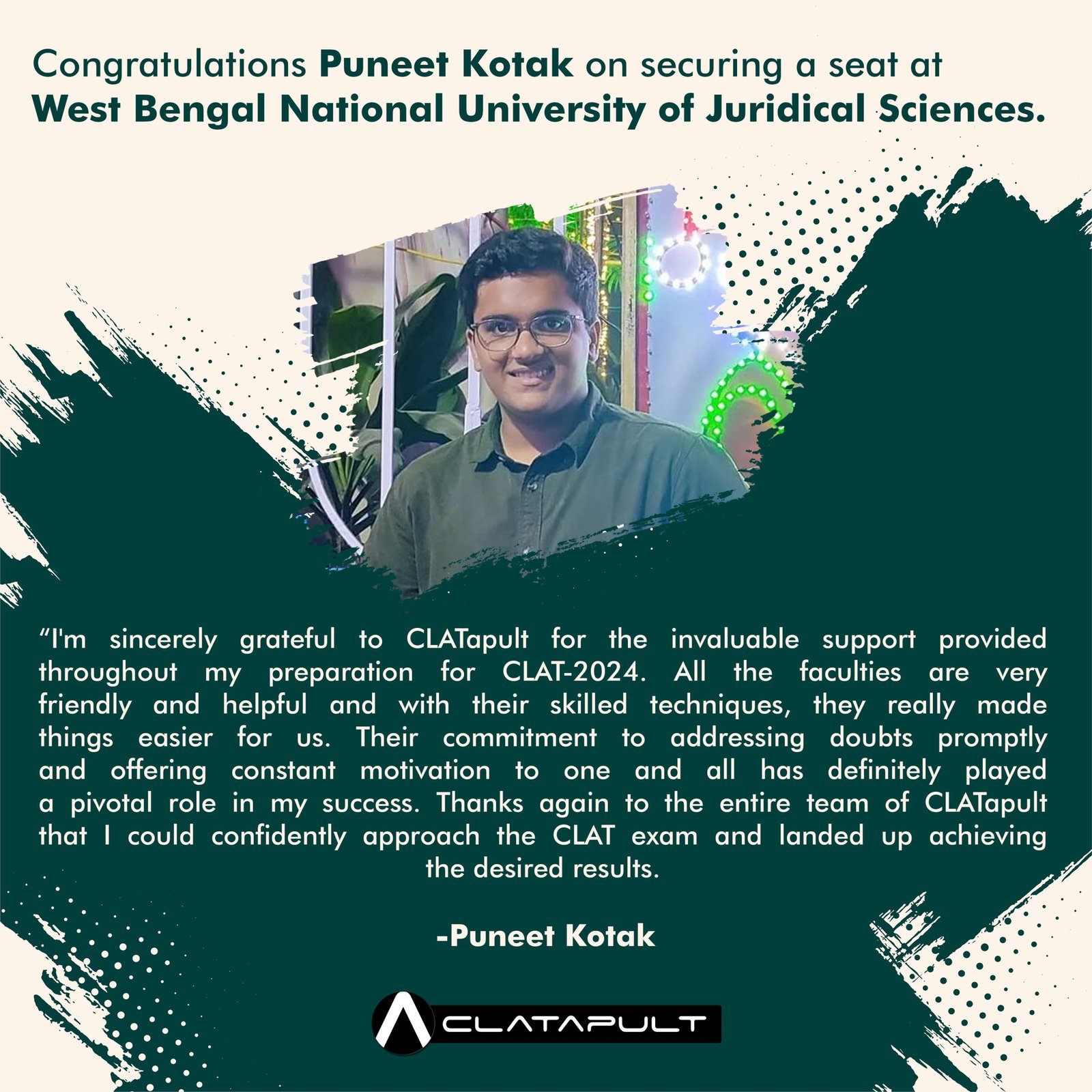 15+ CLATapult Kolkata students secured top NLUs. Leading results in Eastern India for 10 consecutive years.