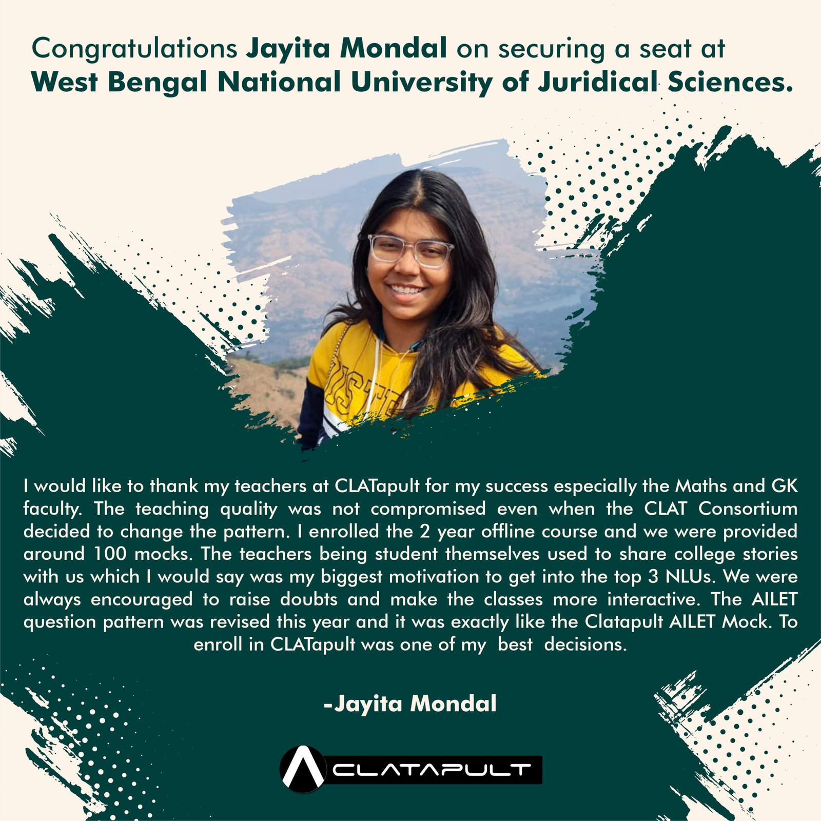 15+ CLATapult Kolkata students secured top NLUs. Leading results in Eastern India for 10 consecutive years.